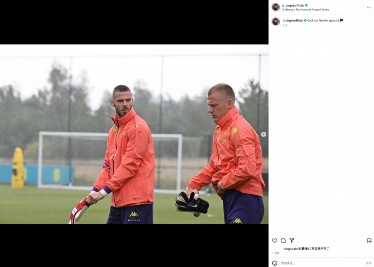 8月1日讯 佛罗伦萨门将德赫亚昨天在Instagram晒照,他来到了英国的圣乔治公园足球基地执行。
