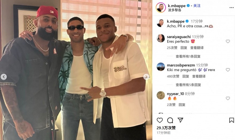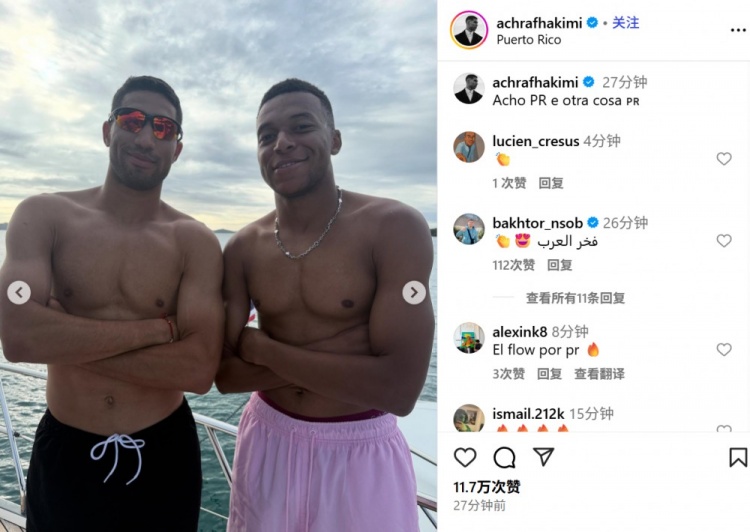 7月25日讯 世俱杯照旧完赛,球员们也纷繁迎来假期。皇马时尚姆巴佩和巴黎后卫阿什拉夫也联袂前去波多黎各度假。
