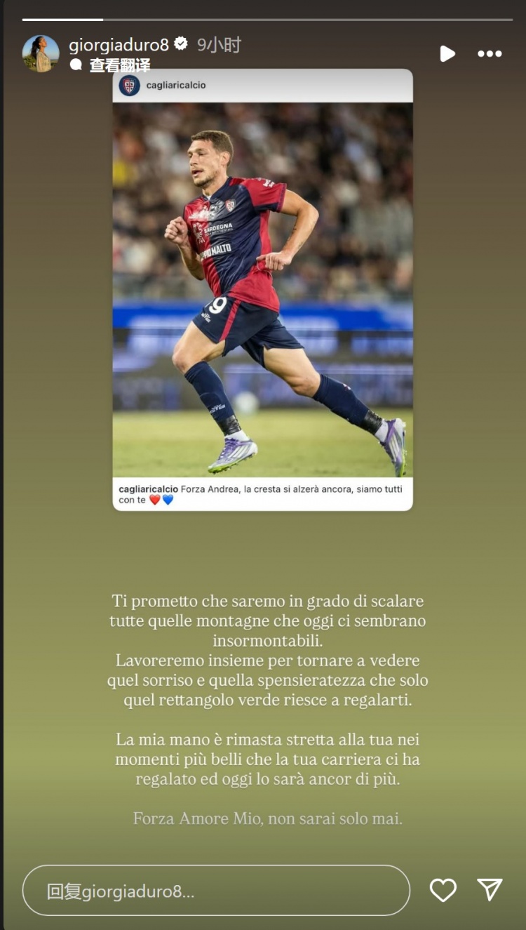 贝洛蒂的浑家杜罗社媒发文:“我向你保证,咱们终将翻越那些如今看似无法朝上的峻岭。咱们将联袂悉力,让你再行展现那抹只须绿茵场智力赋予你的笑貌与应承其乐。”