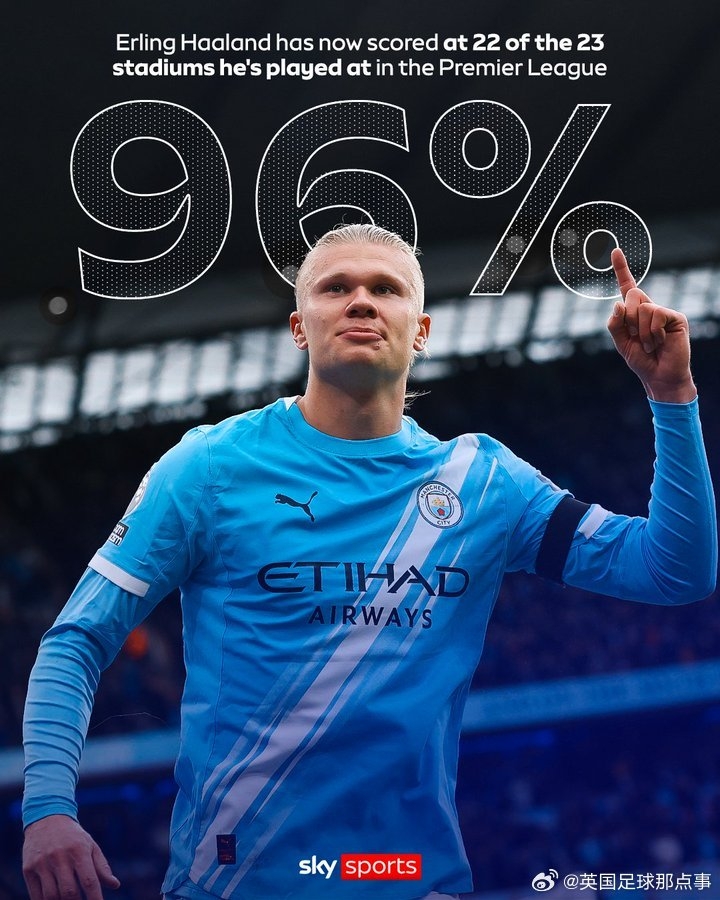💥哈兰德仍是在英超出战的23座球场中攻破了22座的球门!