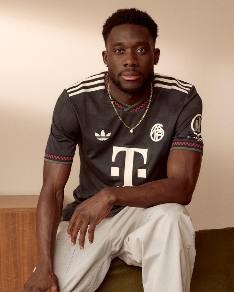 球衣以玄色为主,搭配灰白色徽标、卡其色和红色细节,以及专有的格纹缱绻。