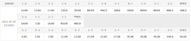 竞彩官方同期开出了比分赔率,其中切尔西1-0取胜最低,现在为1赔6,而2-0、2-1、1-1的赔率均为1赔7,诚然总体倾向切尔西,但平局打出的概率不低,数据关于蓝军濒临巴西球队时的发扬存所费神。进球方面,两边协力孝顺2球1赔3.35最低,其次是3球的1赔3.8,总体倾向进球未几,弗鲁米嫩塞有但愿在惯例时辰拖住蓝军。