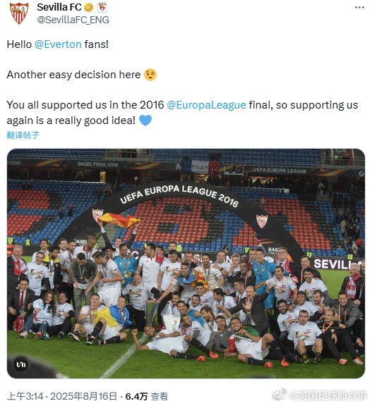 搁这借球迷呢🤣塞维利亚官推昨晚向英超球迷定向推送:亲爱的英超球迷,我们本周将重返西甲赛场,因此统统英超俱乐部的球迷齐有事理遴荐我们行为西甲主队!