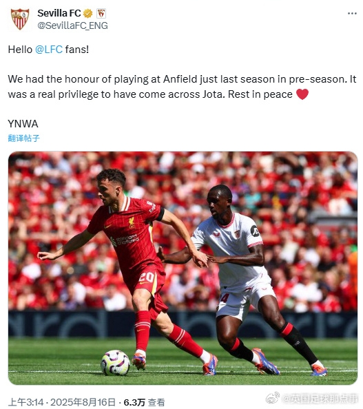 利物浦:上赛季我们有幸在安菲尔德踢球,随机遭逢若塔是我们的运道。愿他安息,YNWA❤️