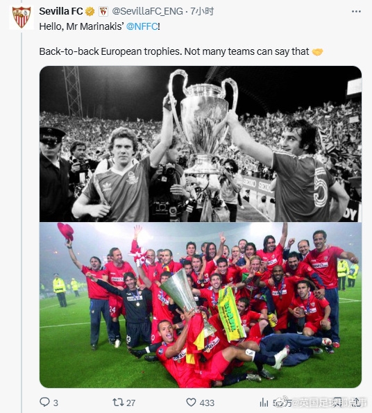 诺丁汉丛林:马里纳基斯先生的球队,欧战两连冠,能作念到这点的球队并未几🤝(欧联杯之王塞维利亚曾经连冠)