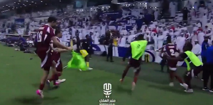 比赛第73分钟,卡塔尔打进第2球2-0杰出,在场边的卡塔尔球员平直向阿联酋球迷舞蹈寻衅。
