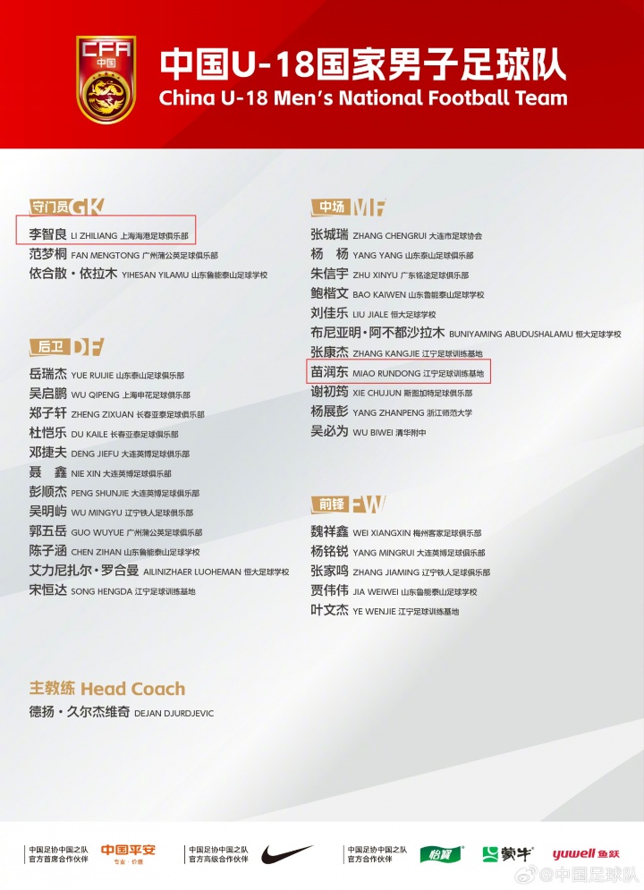 11月4日讯 据江苏新闻报谈,两名竖立过苏超的小将入选了新一期的U18男足国度队名单。