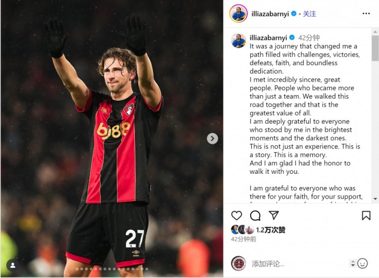 尽管这一章照旧截止,但我对伯恩茅斯足球俱乐部环球庭的道贺依然无穷,愿你们在所追求的一切中王人能得回得手。愿你们心中充满爱,脑中念念想了了,眼中烽火火焰❤️。”