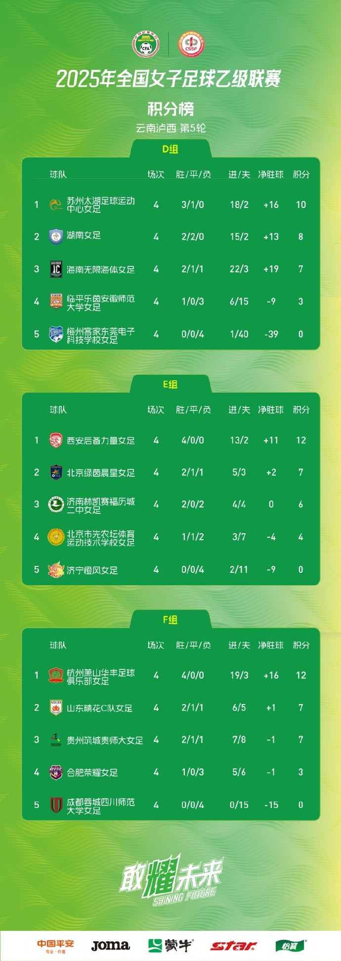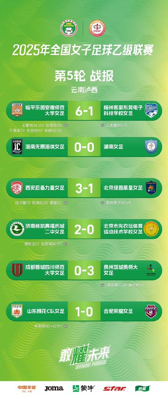 > 2025世界女子足球乙级联赛 第5轮 战报、积分榜、弓手榜