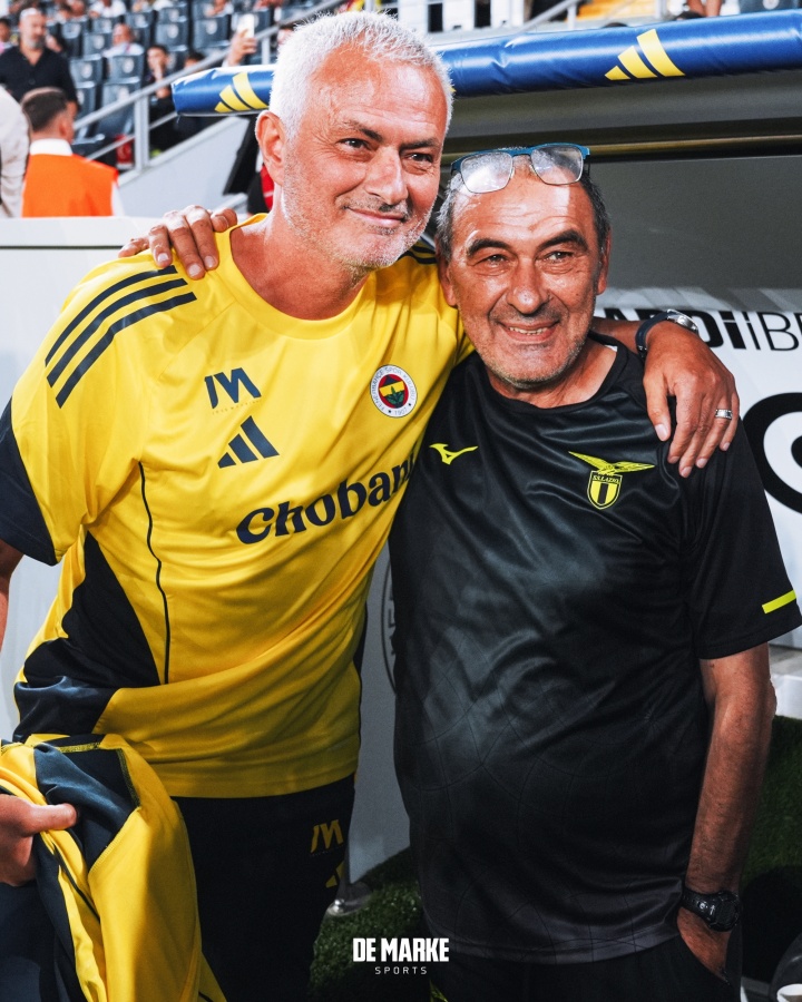 7月31日讯 费内巴切和拉皆奥在当天进行友谊赛,两队主帅穆里尼奥和萨里也旧雨重逢。