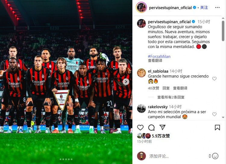 埃斯图皮尼安写说念:“为每一分钟出场本事心胸感德,新鲜的冒险,不变的梦念念:拼搏、成长、为这件战袍倾尽统统。永葆初心,延续前行。”
