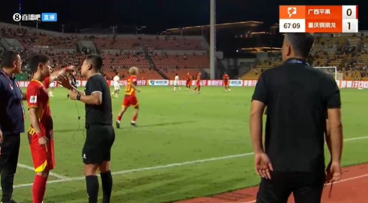 10月05日讯 中甲第25轮广西平果主场vs重庆铜梁龙比赛中,铜梁龙球员突围时踢到敌手肚子,现场字幕给出VAR介入了这次判罚,可能要判给广西点球,相关词现场事故持续。