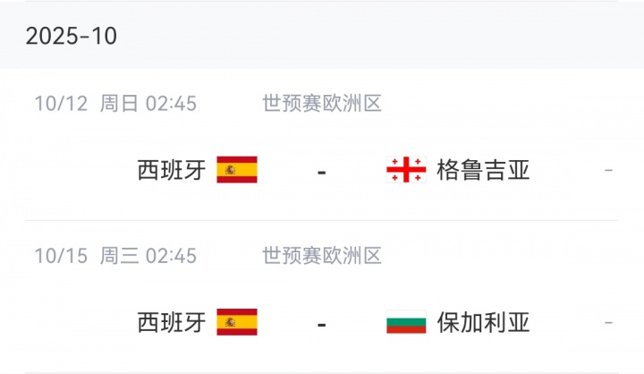 西班牙将在10月12日和15日分袂对阵格鲁吉亚和保加利亚。