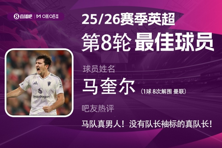 2025-2026赛季英超火热进行中,和咪咕体育聚合发起每轮英超最好球员评比活动!第8轮评比后果出炉,马奎尔双红会8次突围+致胜头球,匡助曼联2-1打败利物浦,红魔拆除近10年客战利物浦不堪记录,马奎尔取得吧友近15万的投票,当选【X咪咕体育英超第8轮最好球员】!