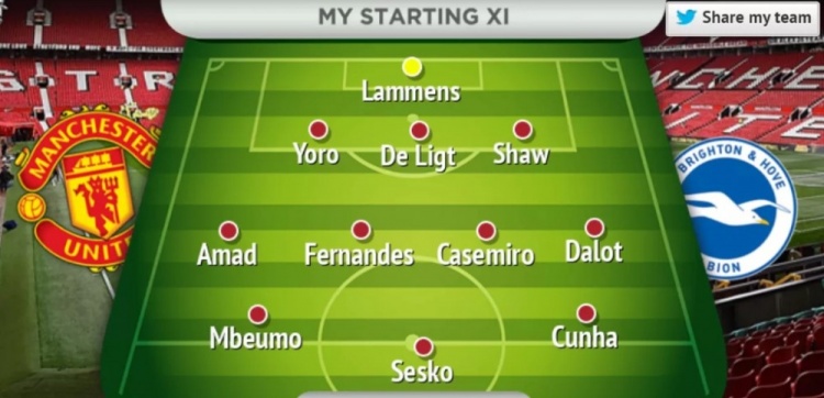 10月25日讯 11月26日0点30分,曼联将在主场的英超比赛对阵布莱顿。赛前,曼彻斯特晚报磋商本场曼联首发。