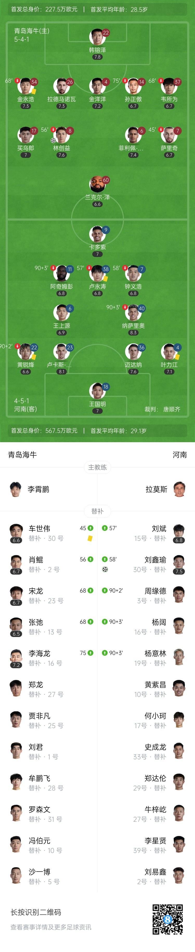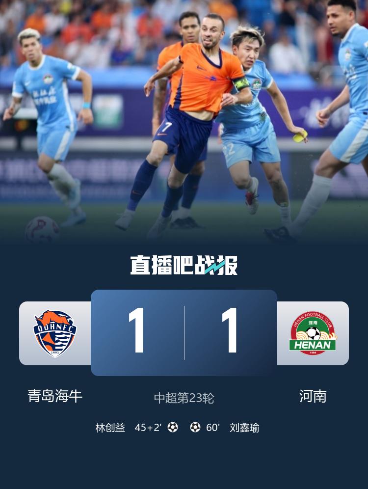 全场比赛放弃,青岛海牛1-1战平河南队。