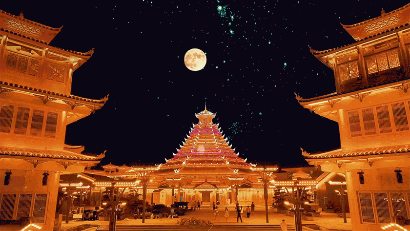 ▲自上而下:㵲水河水上夜游演艺《福地长歌》(杨智伟 摄);天问岛(贵府图);榆树湾文旅商轮廓体(潘雨 摄);怀化市东盟集血月景像(杨志东 摄);荆坪古村(吴立波 摄)